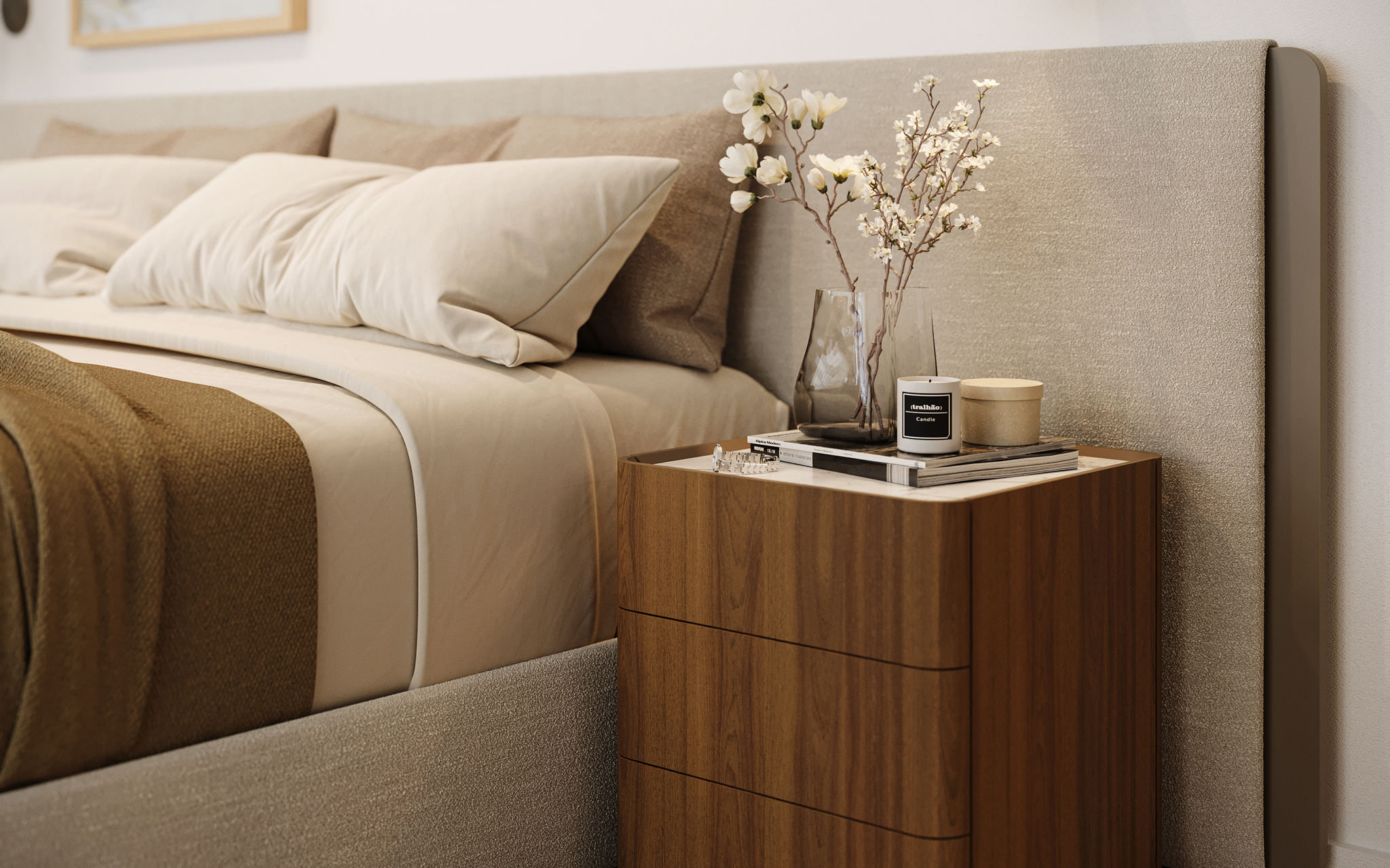 - Avaliar o espaço disponível: Um dos primeiros passos na seleção de é medir o espaço. Para quartos pequenos, optar por mesas de cabeceira compactas ou uma cómoda de menor dimensão pode ser uma escolha mais inteligente. Se o espaço for extremamente limitado, considere adicionar apenas uma mesa de cabeceira e, do outro lado, uma mesa de apoio de modo a rentabilizar o espaço disponível, sem comprometer a funcionalidade.