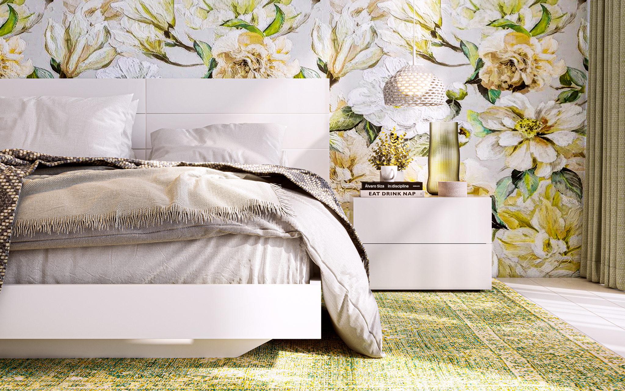 Os padrões forais são clássicos e atemporais, evocando uma sensação de delicadeza e frescor. Ideais para adicionar um toque de natureza e cor aos ambientes, estes papéis de parede são versáteis e podem variar desde os mais subtis e românticos, até aos mais ousados e exuberantes.