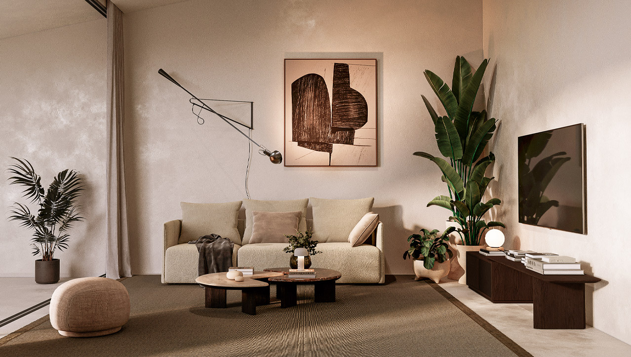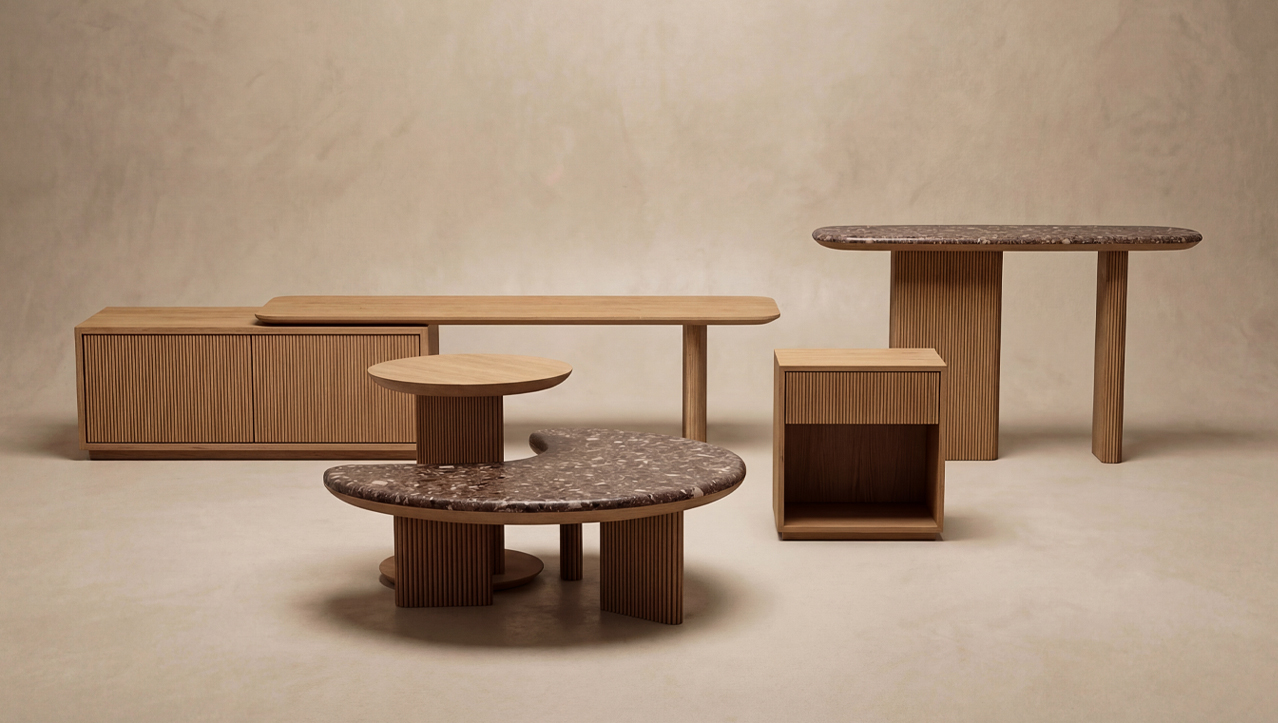 A coleção Aura nasce dessa atenção ao essencial. Um conjunto de peças pensado para responder ao dia a dia com naturalidade, onde o desenho contido, os materiais e a proporção trabalham em conjunto para criar ambientes mais organizados e tranquilos. Da mesa de centro ao móvel TV, da consola à cama, cada elemento foi desenvolvido para funcionar de forma intuitiva, adaptando-se ao espaço sem o complicar.