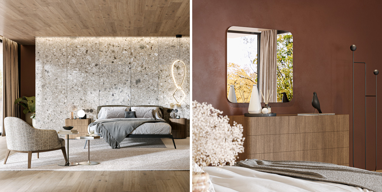 Depois de anos dominados por bases muito frias e minimalistas, o caminho para 2026 aponta para uma paleta mais acolhedora e emocional. Tons quentes, terrosos e orgânicos tornam-se a base de muitos projetos, criando interiores mais habitáveis e menos rígidos.