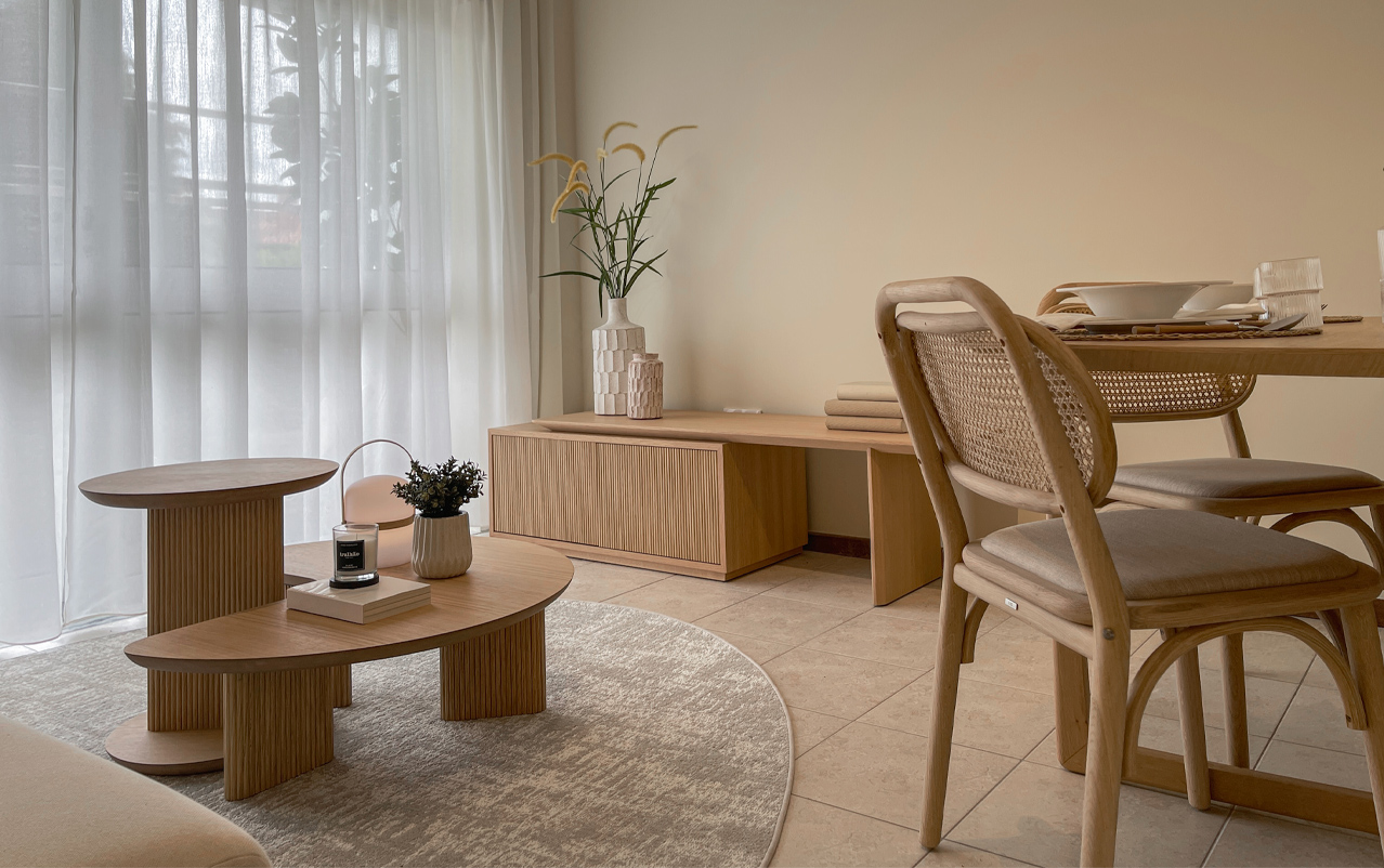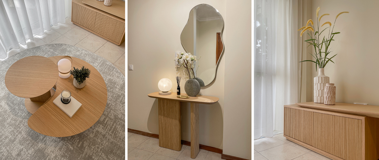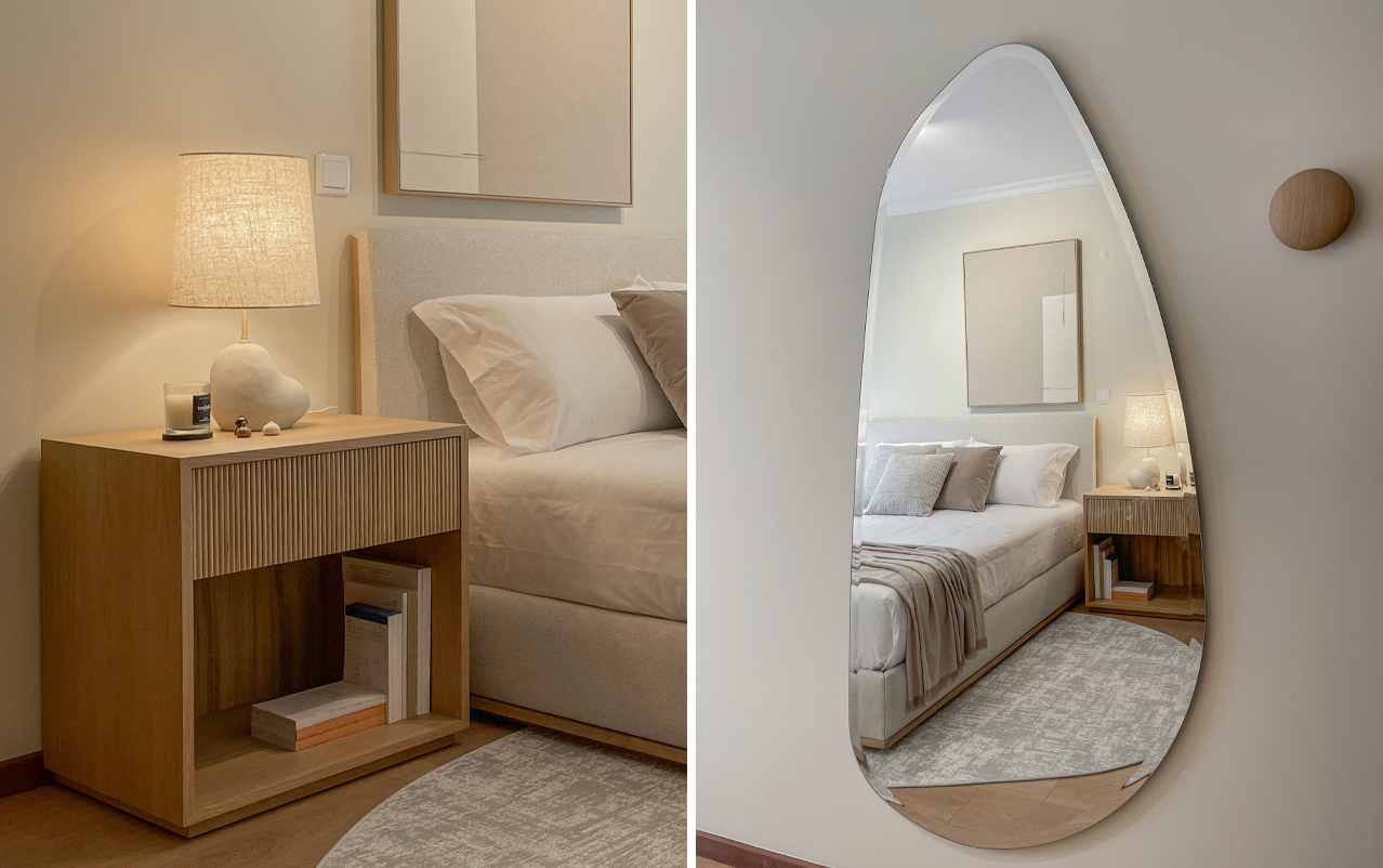Each piece has been designed to ensure fluidity, avoid visual interruptions, and allow for a more practical and comfortable experience. From the TV unit and coffee tables to the bed and bedside tables, everything has been considered down to the smallest detail.