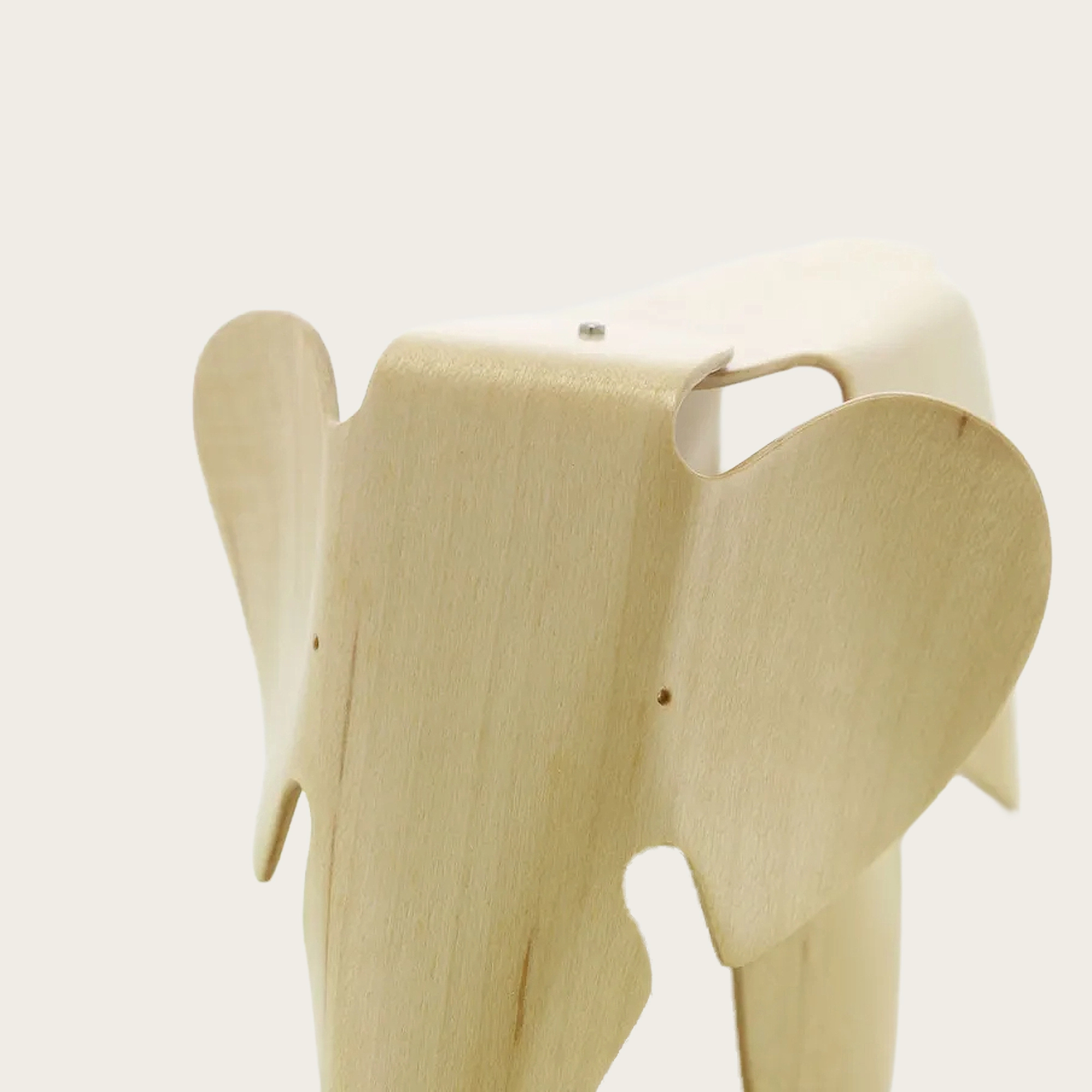 The Plywood Elephant occupies a prominent place among the plywood pieces designed by the Eames. In the early 1940s, Charles & Ray Eames successfully developed an innovative method for shaping plywood into three-dimensional forms, which they used to produce a wide range of furniture and sculptural objects. Among the early plywood designs, the Elephant is one of the most difficult to produce. Narrow angles and compound curves require a sophisticated mastery of plywood technology. Designed at the same time as their children's furniture, the Plywood Elephant can also be seen as a playful counterpart to the leg splints developed by the Eames for military applications - which were the first mass-produced objects made of three-dimensionally molded plywood.