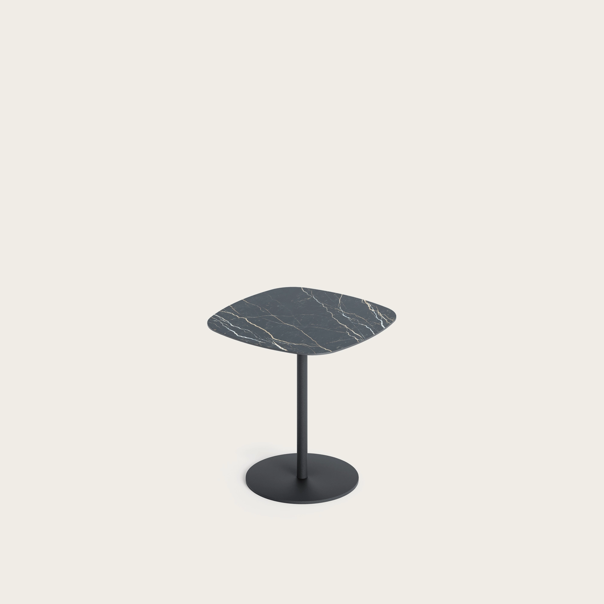 The Kelly side tables combine elegance and practicality in three different sizes. With a square top and rounded corners, they feature a modern design. Their cylindrical leg, supported by a round base, offers stability and sophistication. Ideal for use together or individually, these tables are a versatile addition to any space.