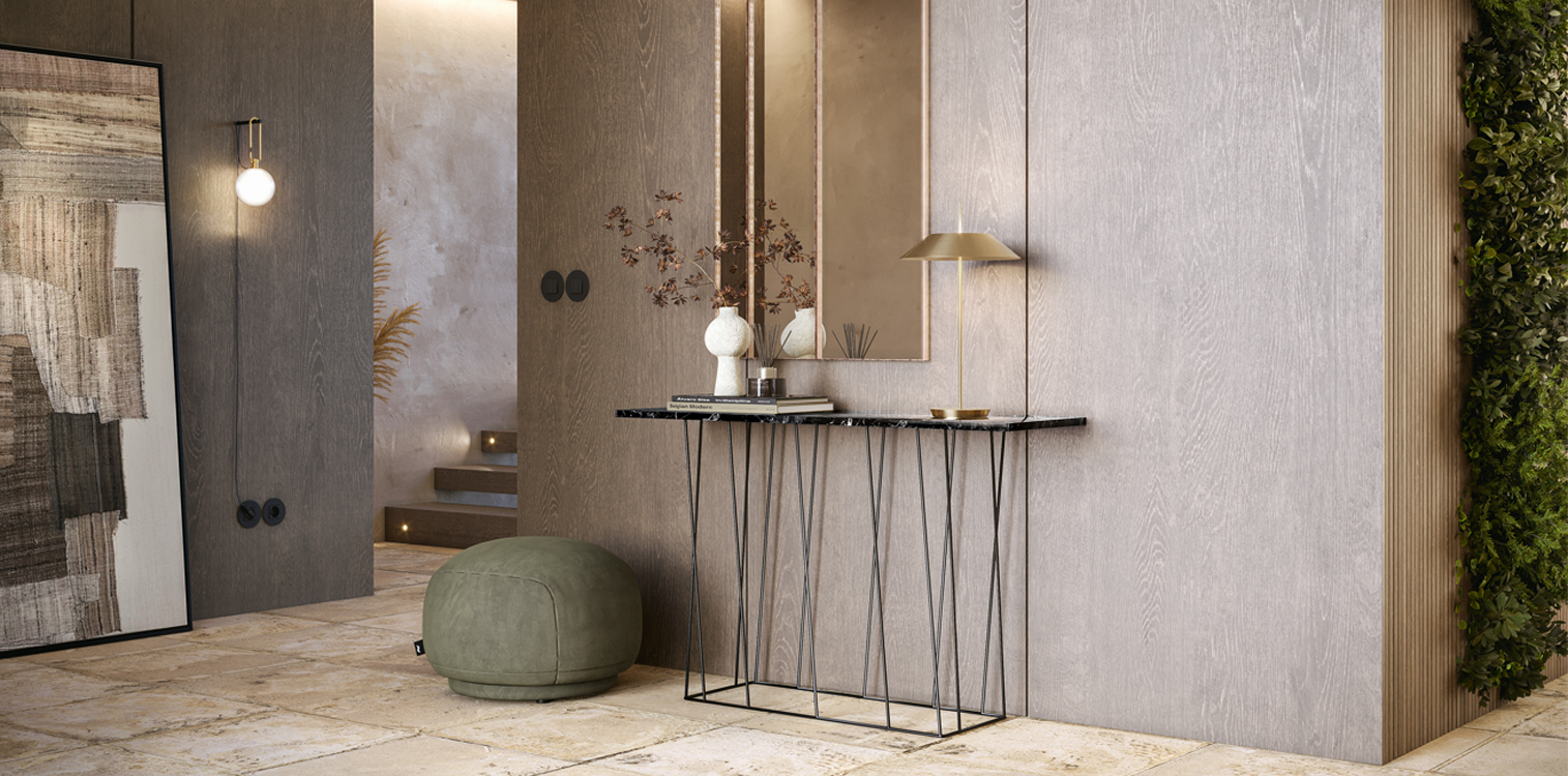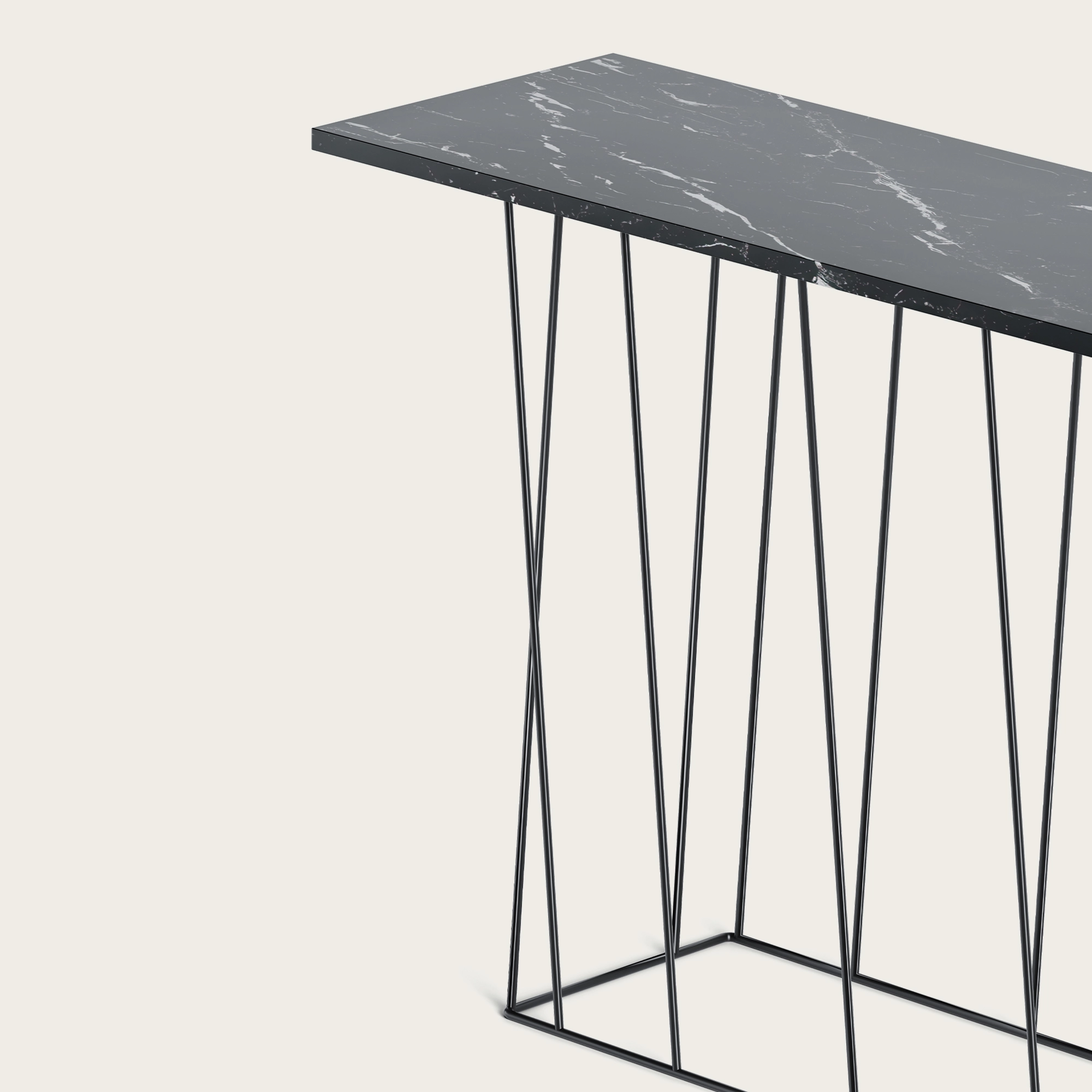 Helix é uma consola com diversas opções de tampo em conjugação com originais pés a preto. A ilusão criada pelo cruzamento de varetas metálicas em dois planos distintos está na génese deste modelo, que vive da modularidade conferida pelas várias opções de acabamentos, da qual resultam peças para diversos gostos e tipologias de casas.