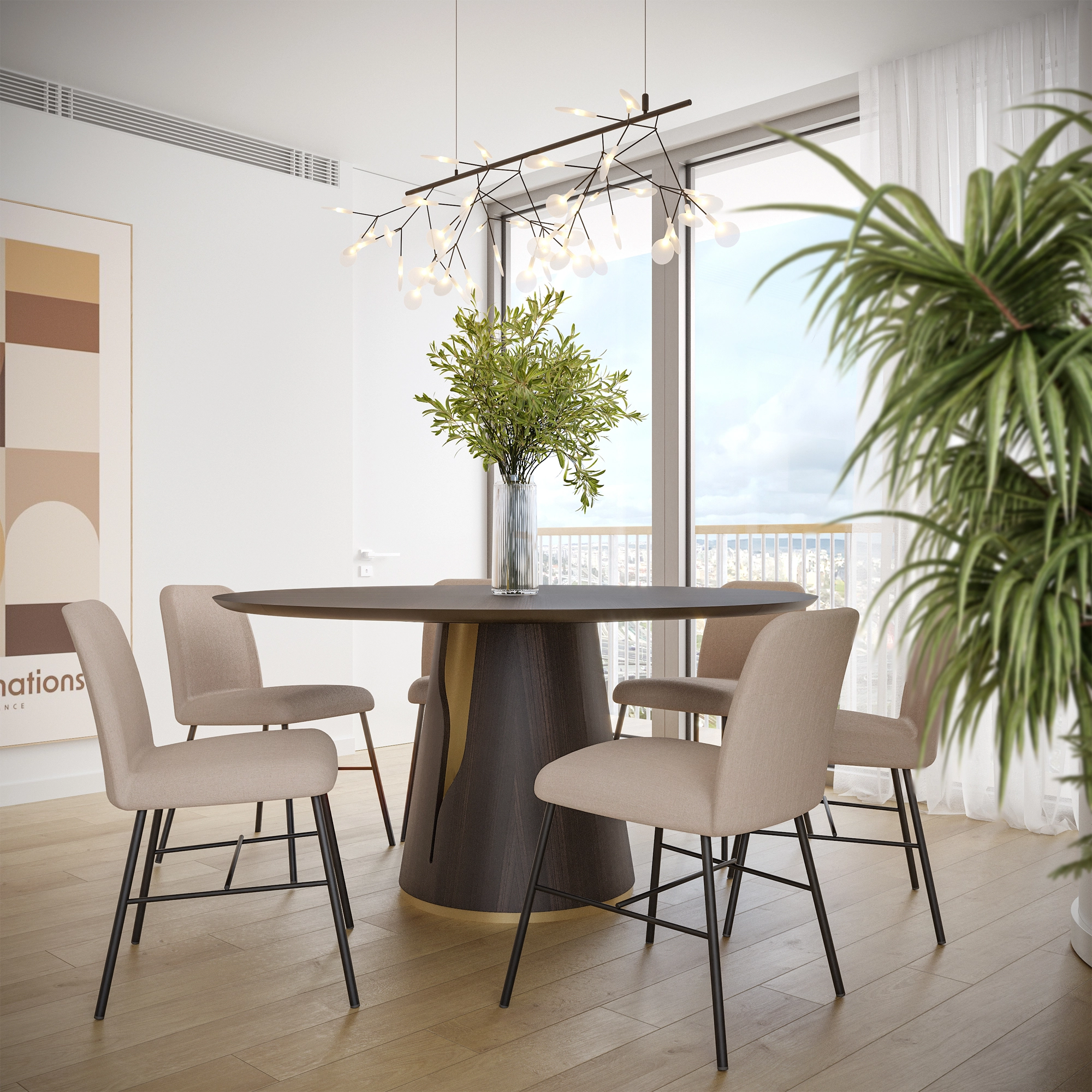 A mesa de jantar Ray é uma verdadeira expressão de força e personalidade. Com o seu design robusto e imponente, esta mesa apresenta várias configurações de tampo, complementado pelo recorte vazado do pé central. Esta característica acrescenta um elemento de movimento e dinamismo ao design, enquanto a combinação de cores contrastantes entre o interior e o exterior transmite uma sensação de tranquilidade e aconchego.